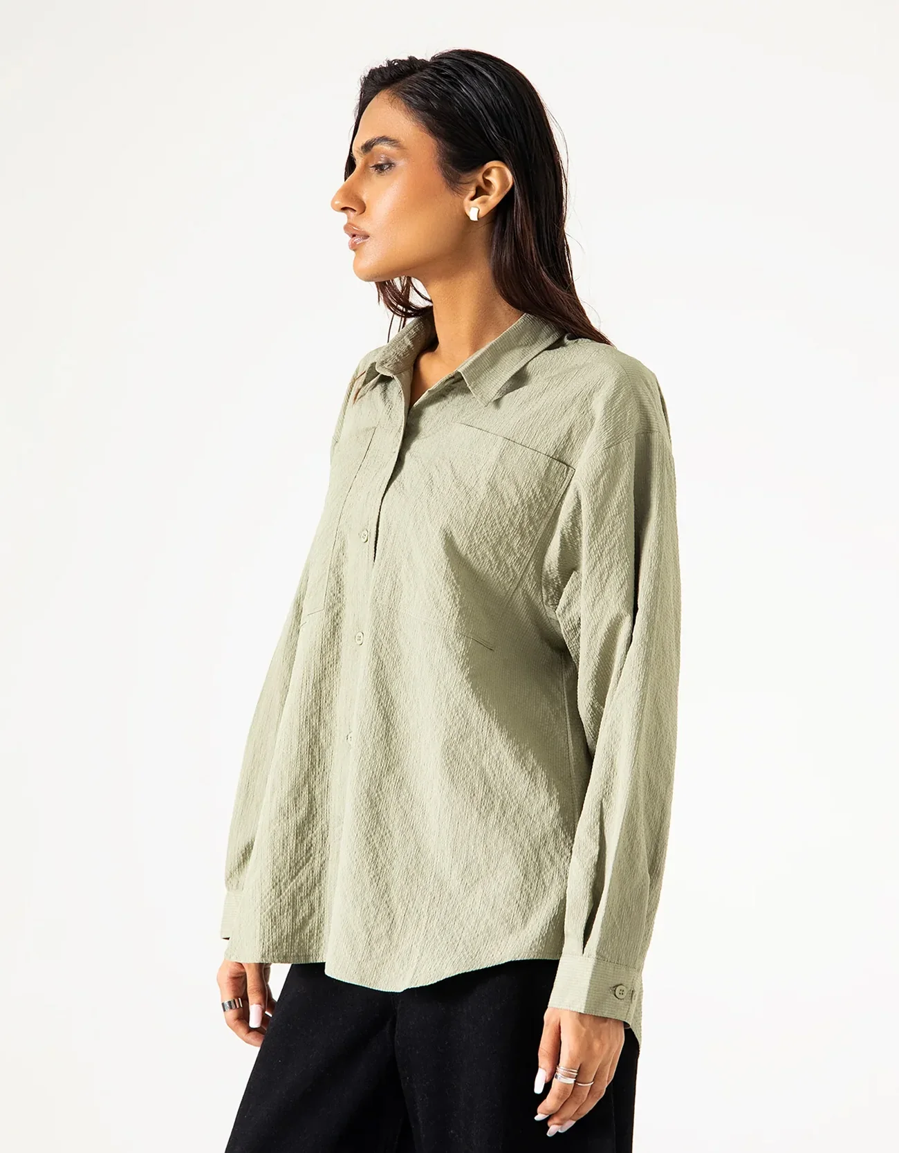 Textured button down collared shirt with full sleeves & chest patch pockets.